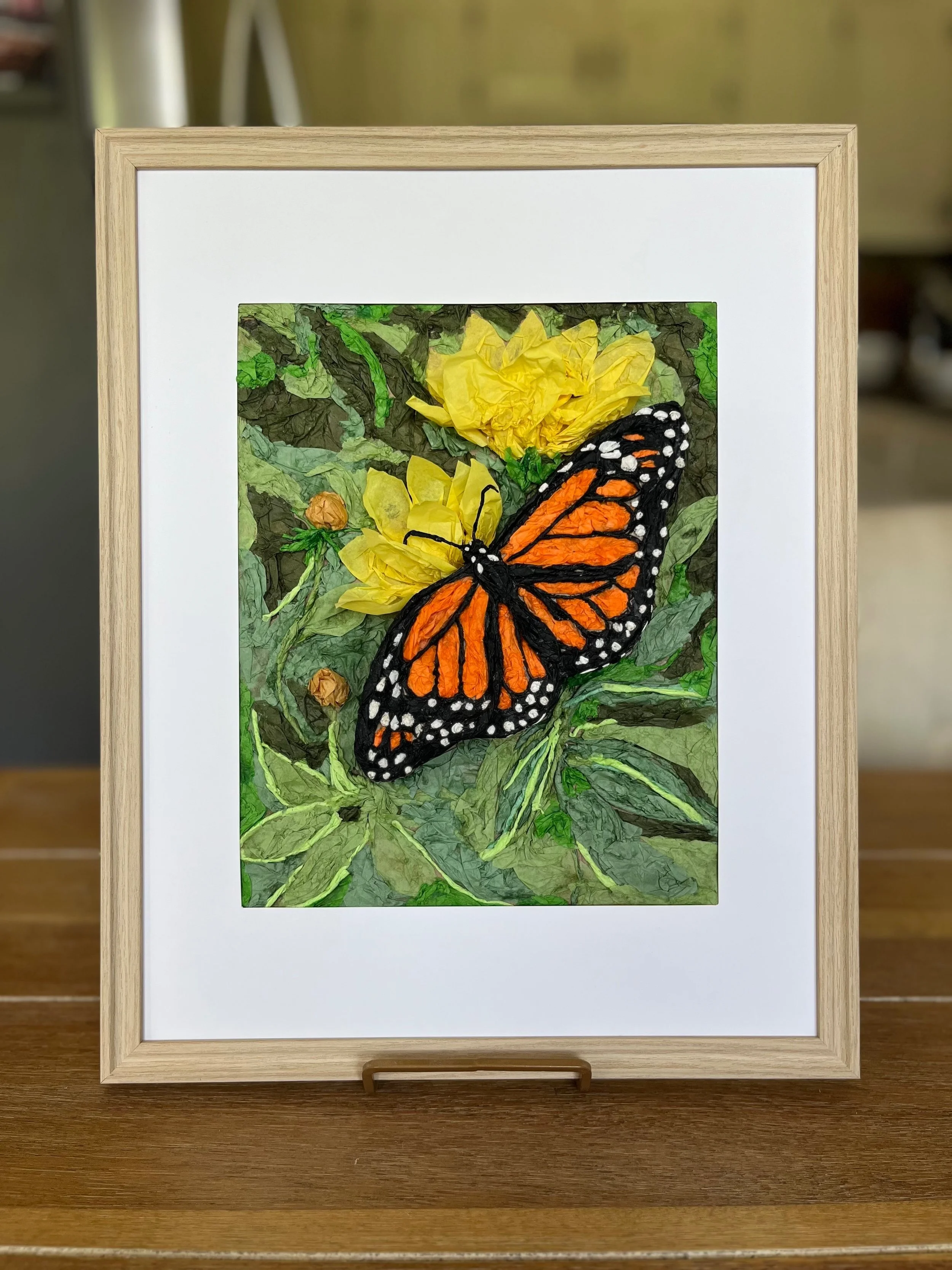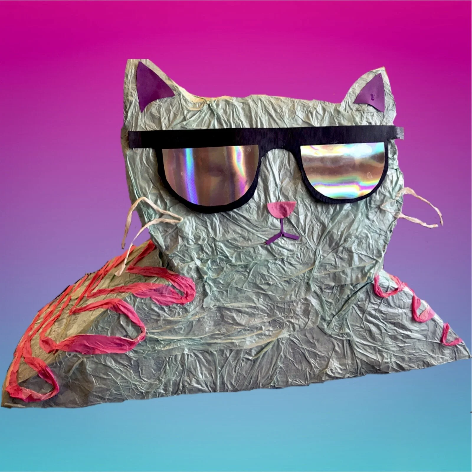 I’m Andrea, and I make art out of tissue paper — but not the kind you throw away. I turn it into texture, color, and story. From sassy cats and rock legends to unicorns, dinosaurs, and even presidents, my pieces are one of a kind, detailed, and entirely handmade. Whether it’s a framed butterfly or a life-sized piñata, I bring imagination to life, one layer at a time.